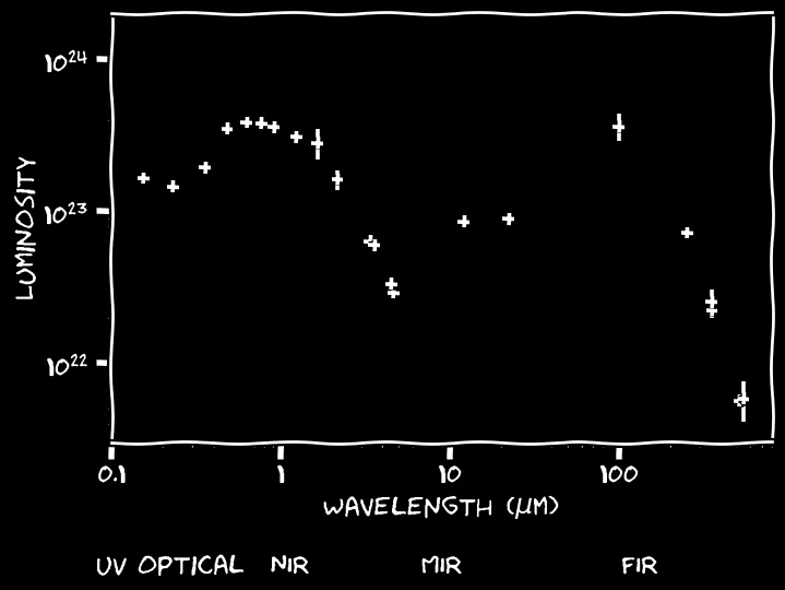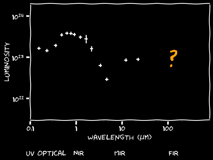 Unfortunately, observing the full spectrum from ultraviolet (UV) to far-infrared (FIR) is currently impossible...